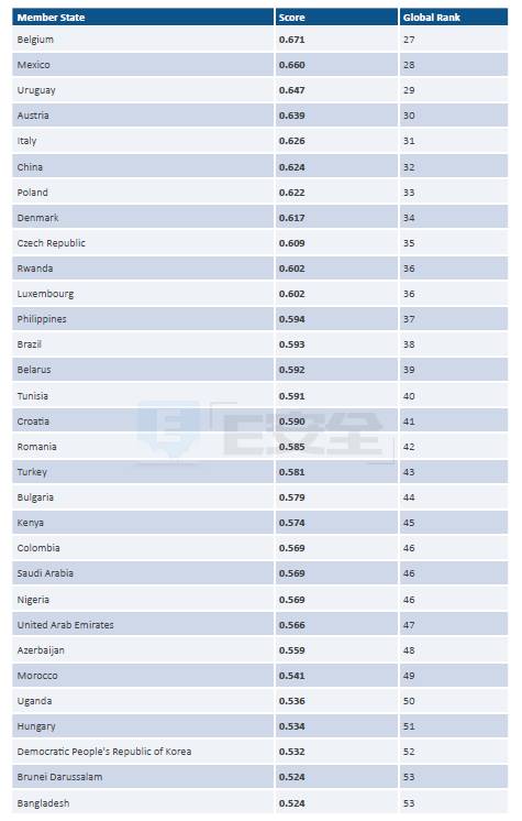 国际电联根据以下5方面因素对各国网络安全进行打分排名: