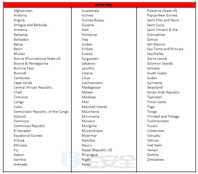 开始阶段:共有96个国家已经开始承诺履行网络安全职责。
