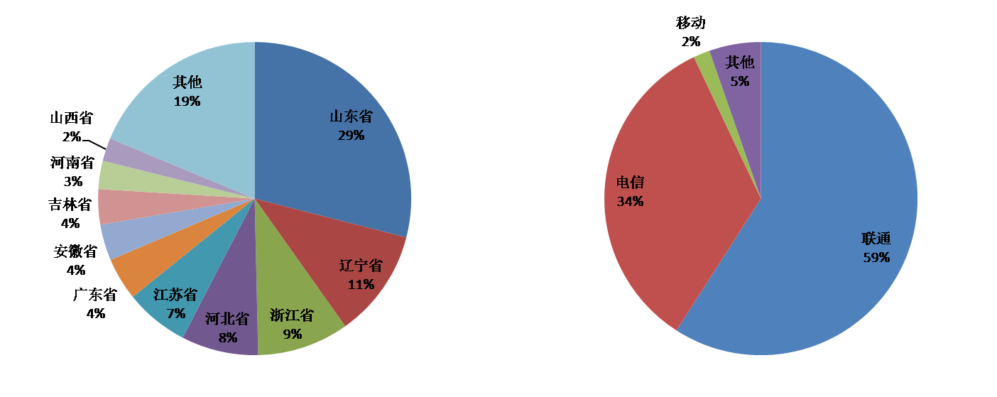 图3 攻击X.X.145.201的反射服务器按省份、运营商分布