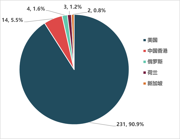 同时,我中心发现此类钓鱼网站的服务器IP均位于境外,图8为钓鱼网站服务器IP按国家和地区分布情况,其中位于美国的服务器最多,占比高达90.9%。