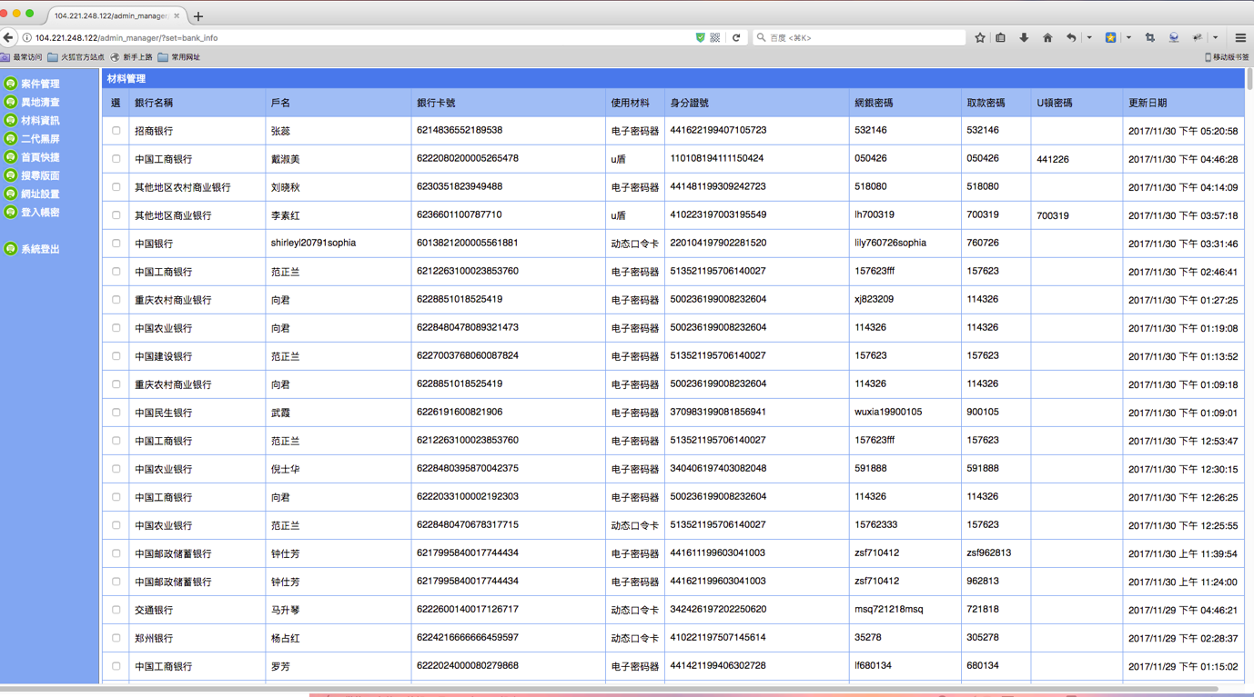 此外,在后台中也存有此类钓鱼网站收集到的受害用户银行卡信息,如图7所示。